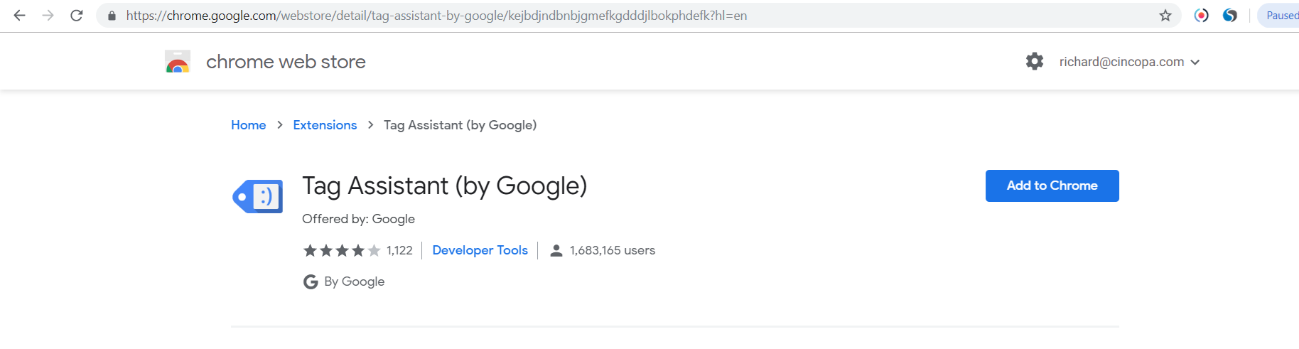 To add the extension, simply search for Tag Assistant in Chrome Web Store or access the URL: https://chrome.google.com/webstore/detail/tag-assistant-by-google/kejbdjndbnbjgmefkgdddjlbokphdefk?hl=en