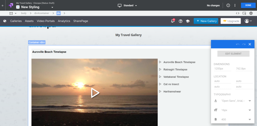 In this example, we will edit the background color and font colors of the web page with Cincopa Gallery.