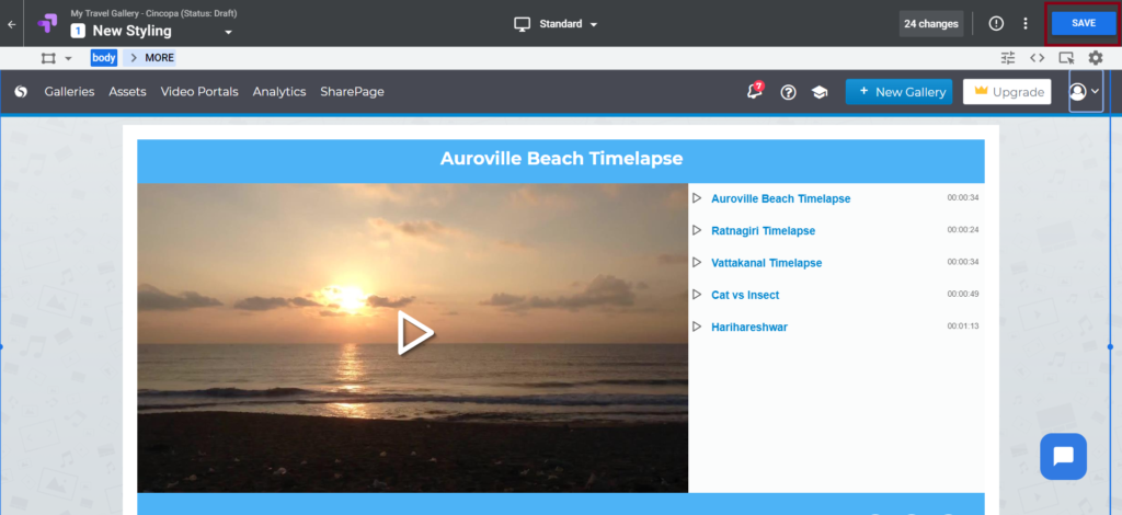 You can A/B test your Cincopa Gallery by creating different versions of your Cincopa Gallery, as well. This can be done by changing multiple sections, like changing the brand color, changing button styles, etc. This will help you find out which variation of the gallery is viewed or played the most.