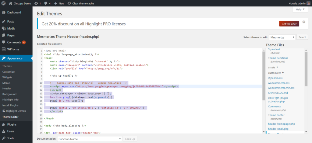 We added the code in our WordPress header page.