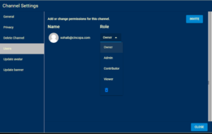 Users: Invite users to channel and assign their roles (i.e. Owner, Admin, Contributor, Viewer)