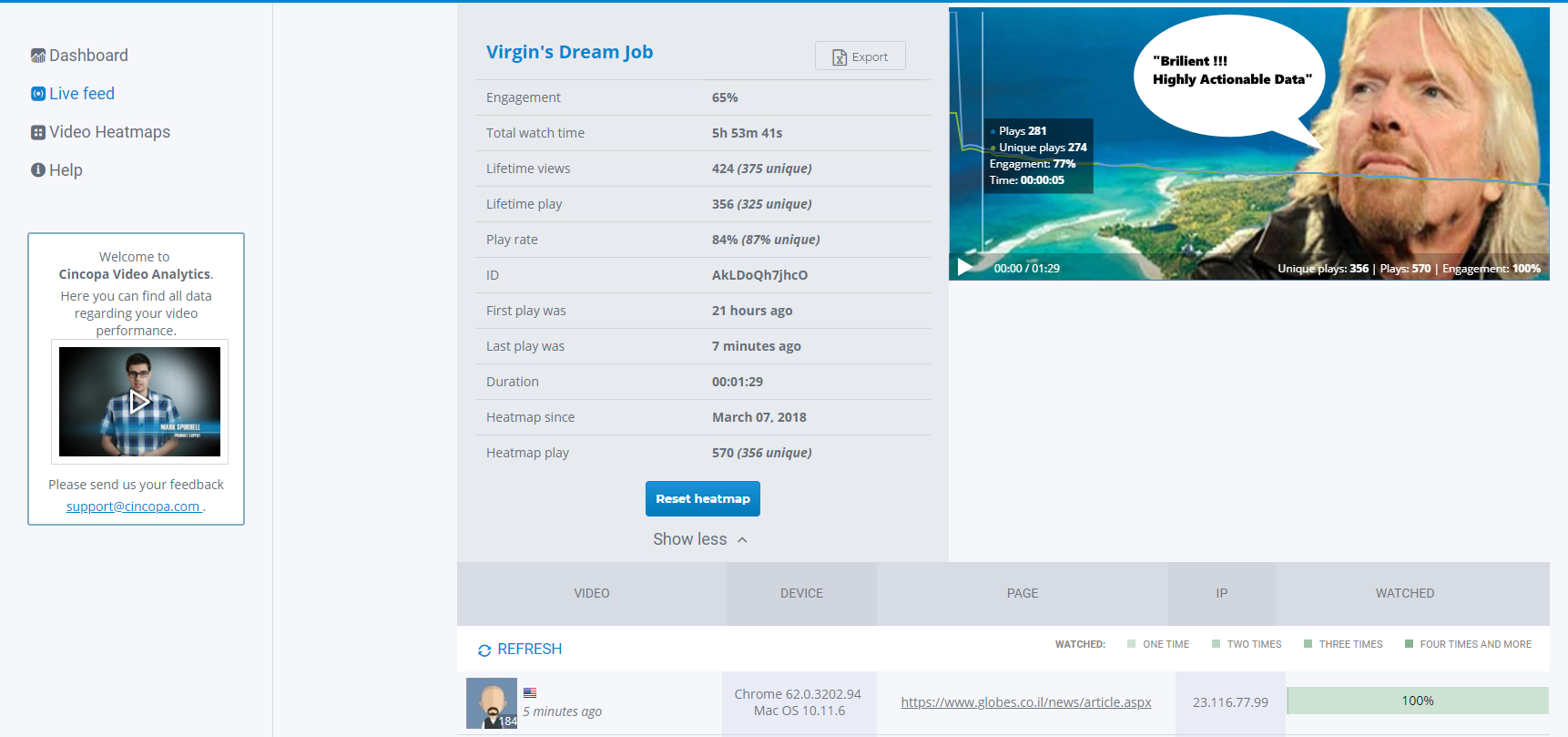 Cincopa’s user and audience level Video Analytics will provide valuable insights on a video’s audience level engagement to complement HubSpot’s timeline video events and help you understand what is a good number for “% video played” between engaged and none engaged users for utilization in HubSpot’s lead scoring.