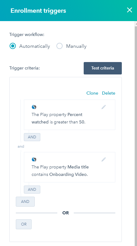 Contains the title of the video a viewer watched. See how we used a combination of 50% watched and video title contains “On boarding video” to suggest that he will enroll the workflow when he watches 50% of our onboarding video. As we used contains if we had 2 videos named “Onboarding video part 1” and “Onboarding Video part 2”, both will trigger which saves you the effort of building two exact copies of the same workflow for part 1 and 2 when you really want to include both as a criteria.