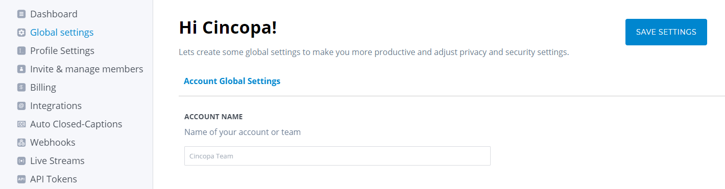 Once you have access to the Account Dashboard select the Global Settings option on the menu that is displayed on the left-hand side of your screen.