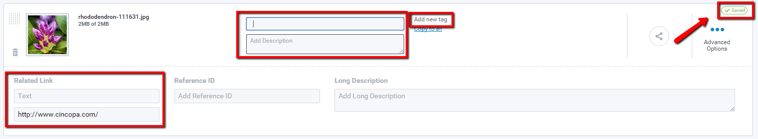 5. Upload files and click “Advanced Options” in order to expand the gallery.