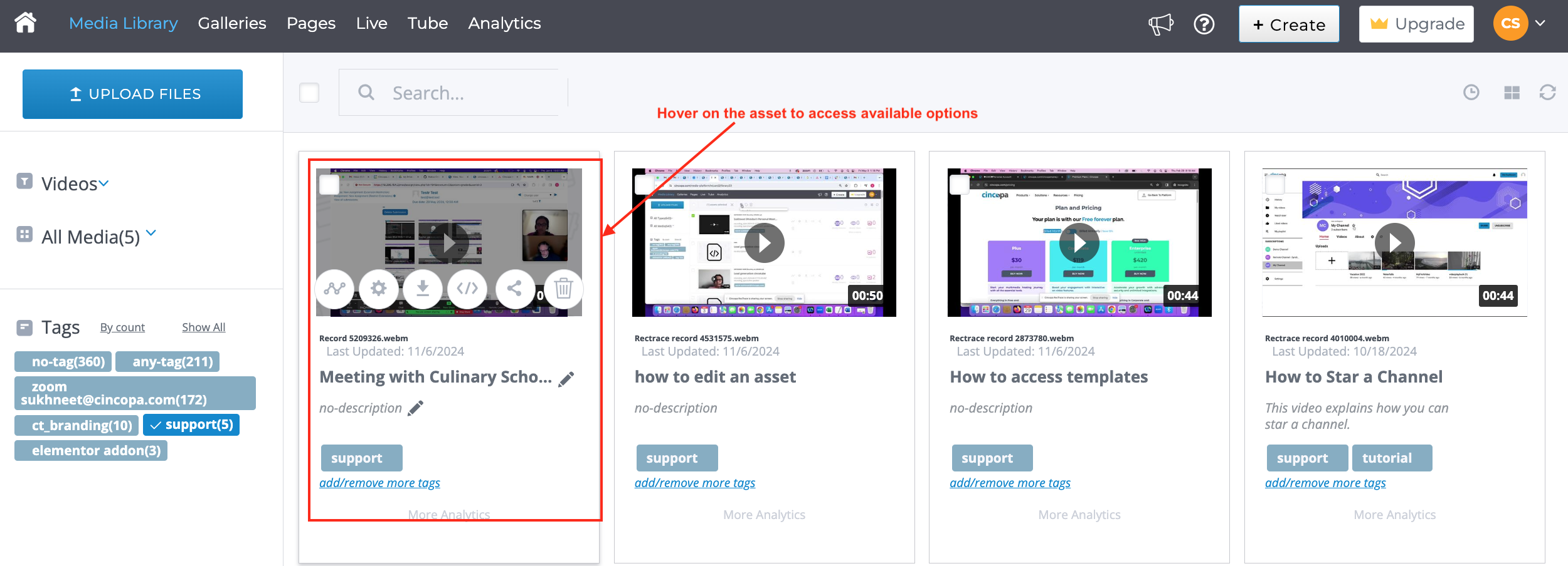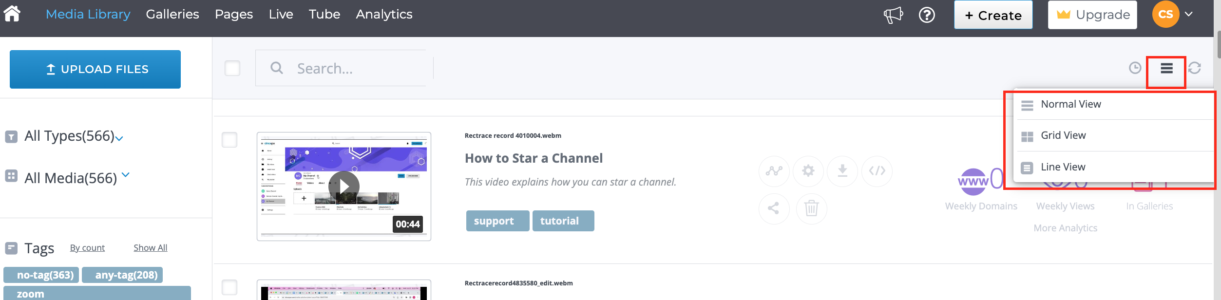 Cincopa makes it easy to navigate and manage your media by allowing you to switch between different views in your Media Library. This flexibility helps you quickly find the content you’re looking for.