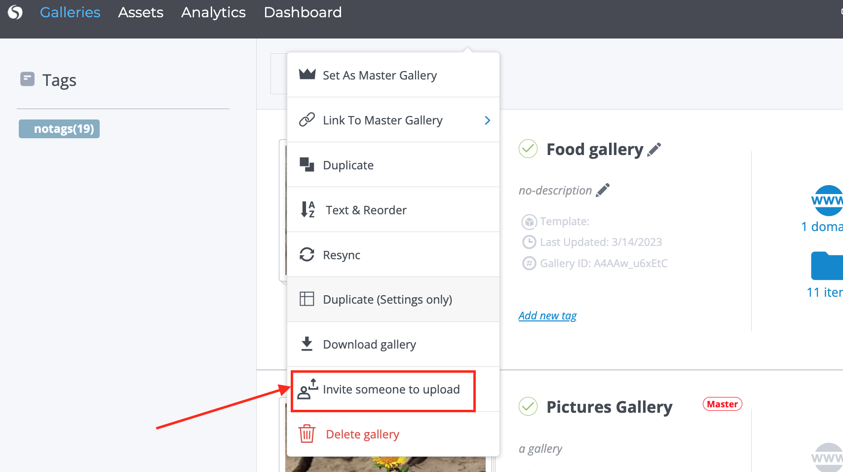 Invite to Upload will allow you to invite outside members of your team to upload assets directly into a specific gallery.
