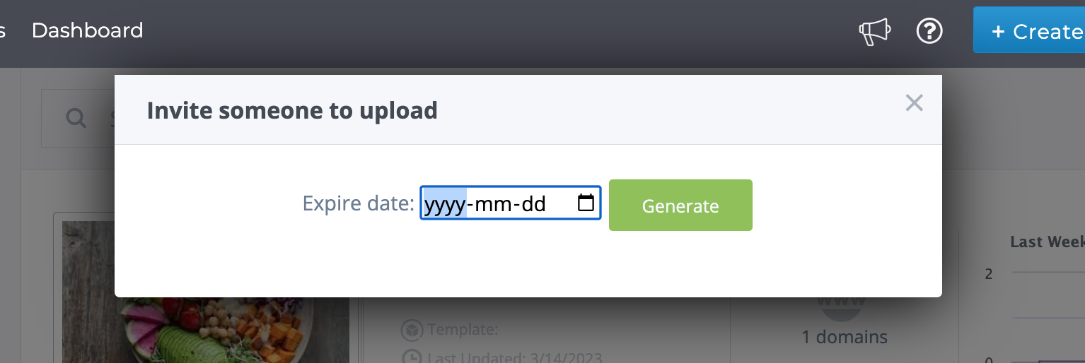 Step 4 : Choose an expiry date. This means that after this date the person will no longer be able to upload assets. Then click on the Generate button to generate the link.