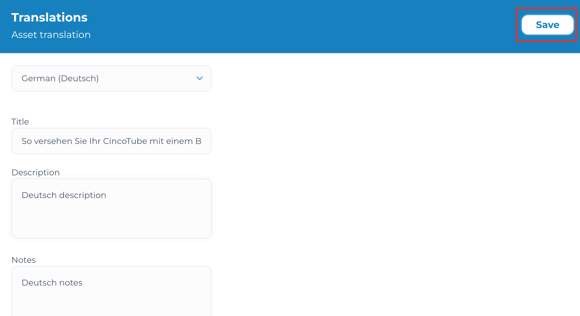 - Select a language from the dropdown menu to add the titles and descriptions in the selected language.