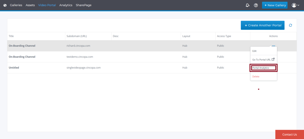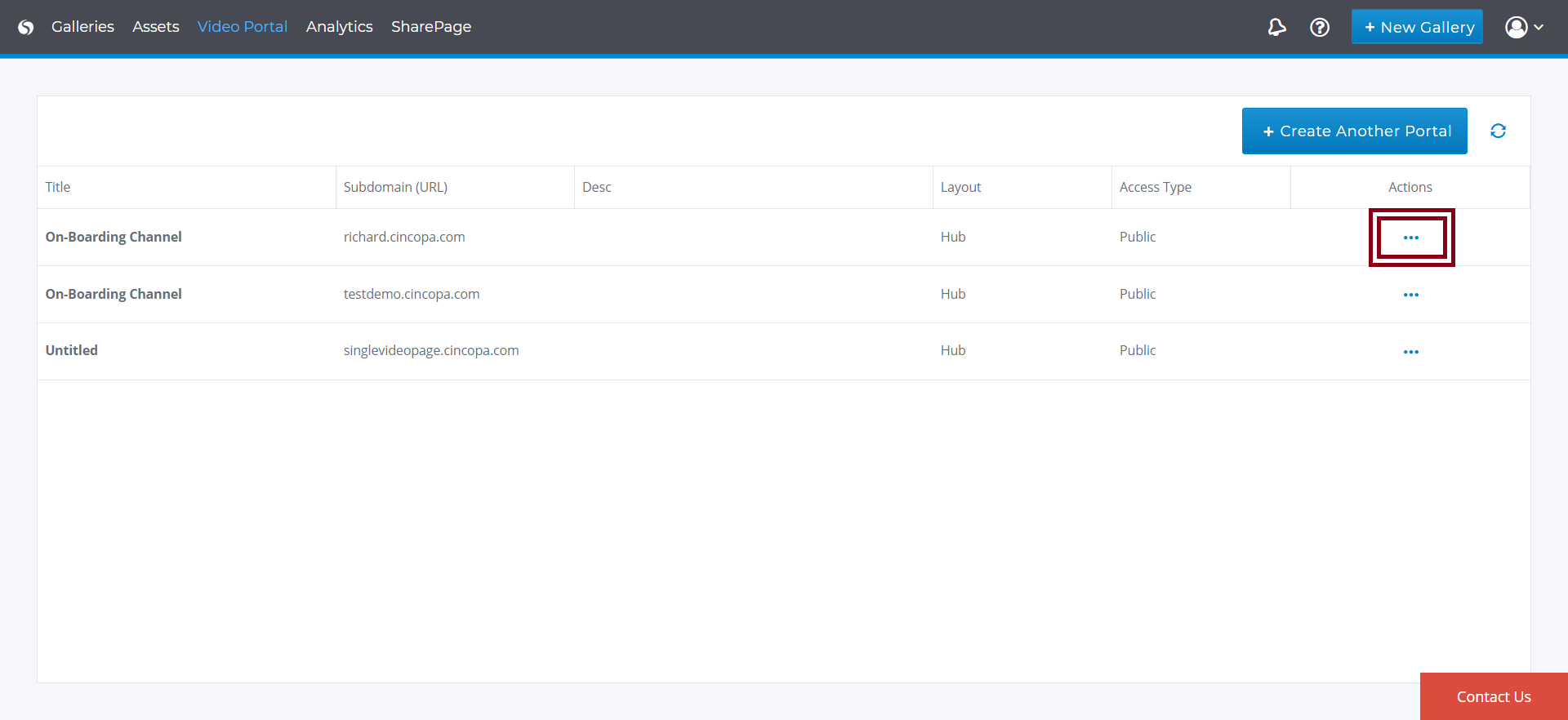 Now you will see the list of Video Portals you created. To check for more options click on the three dots as shown in the screenshot below.