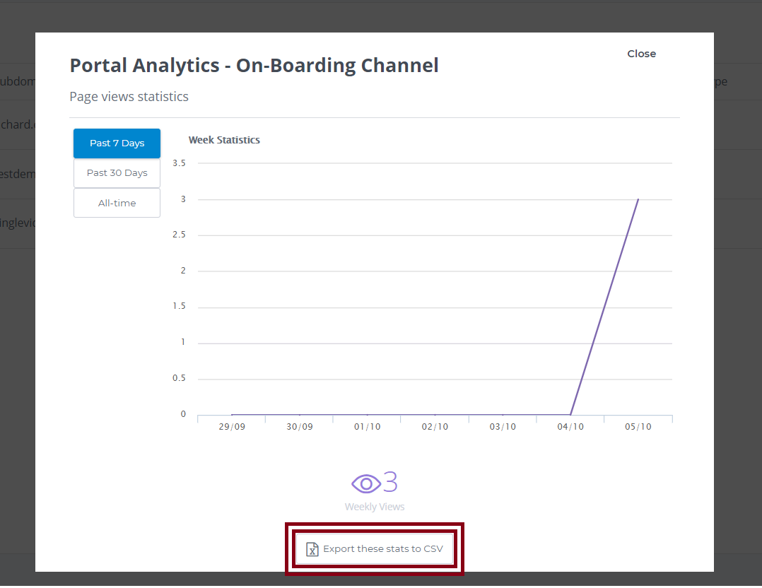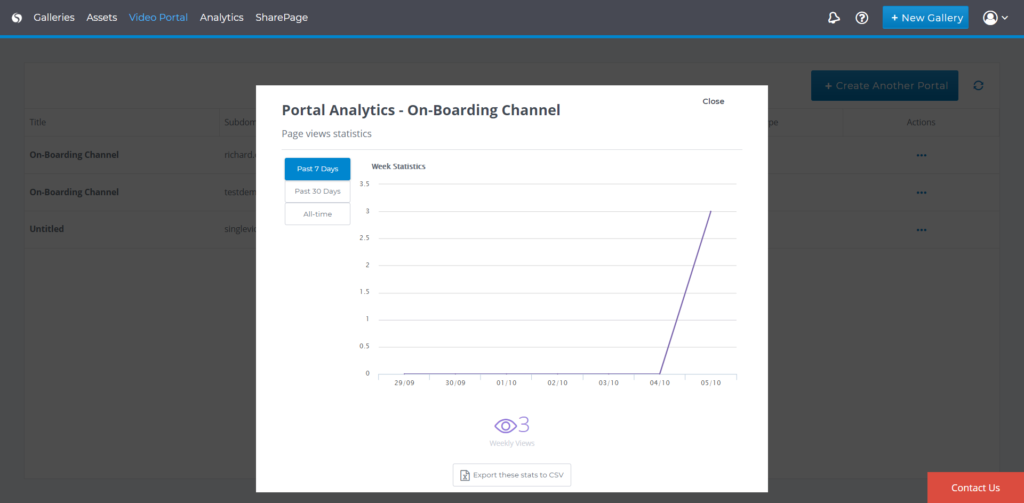 You will now be able to see the analytical data of the video portal with a graph. You can also switch between analytical data of the Past 7 Days, Past 30 Days, All-time.