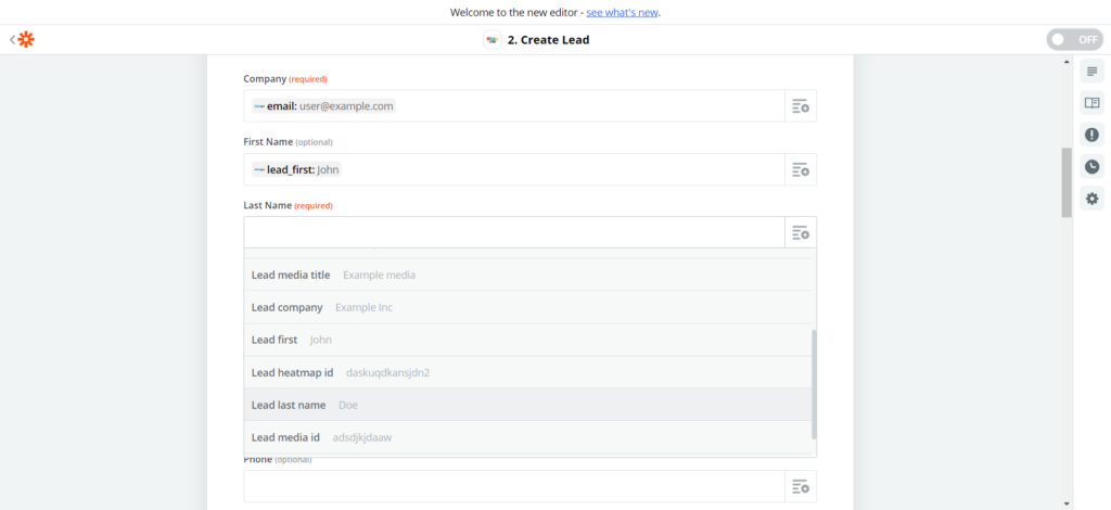 - Then you will be prompted to select a trigger, so choose New Lead.