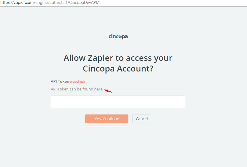 - Paste the API token into the available window. Click “Yes, Continue“.