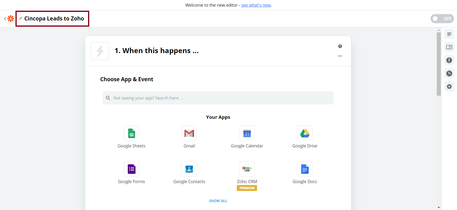 - Then you will be prompted to select a trigger, so choose New Lead.