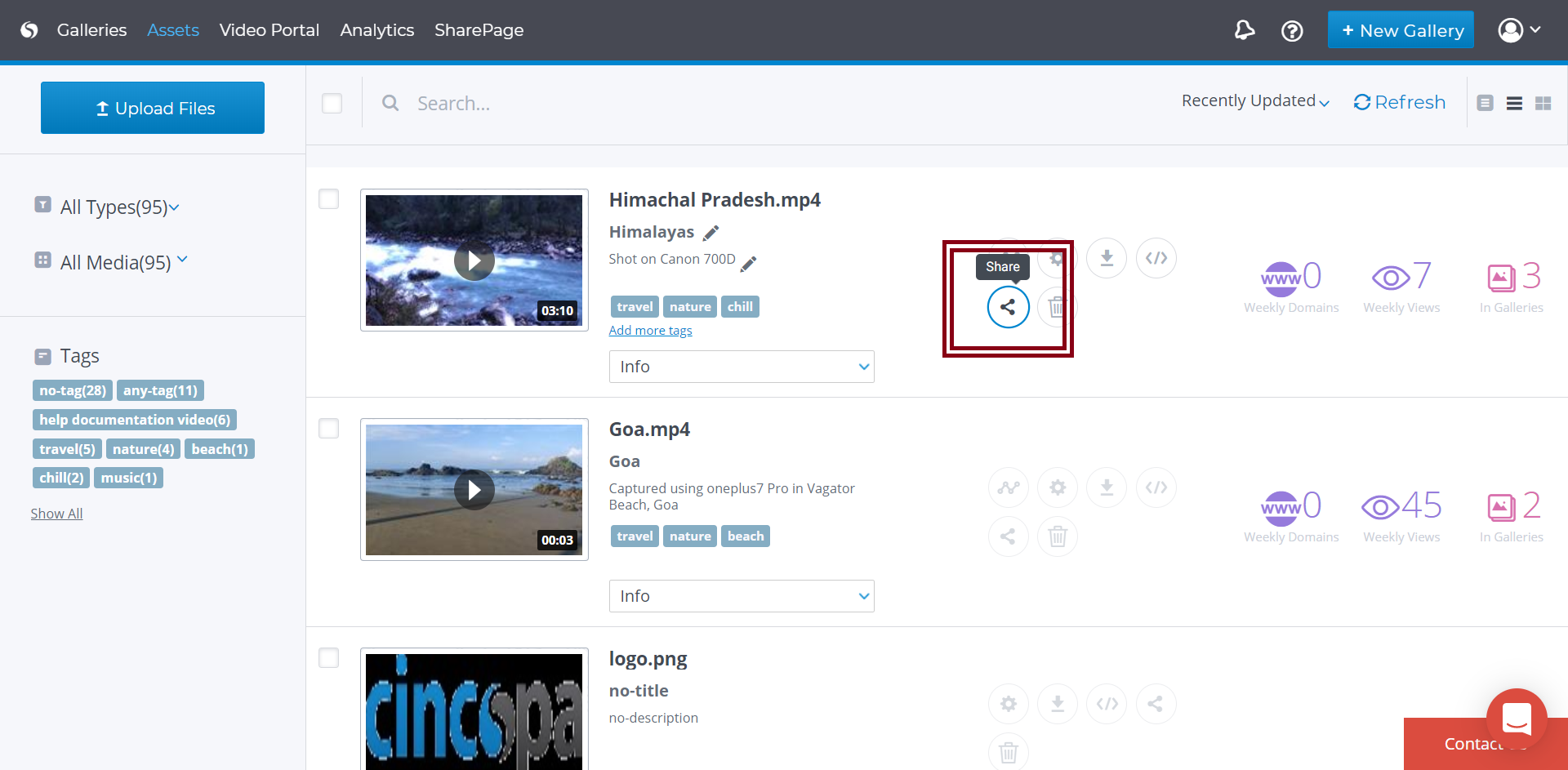 Log in to your Cincopa account and click on Assets to access all your media content.