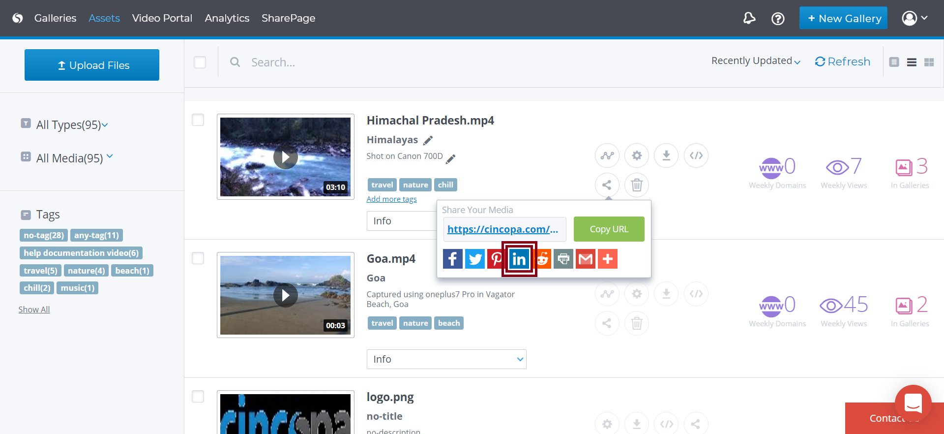 Let’s see how we can share our Cincopa media content to Linkedin: