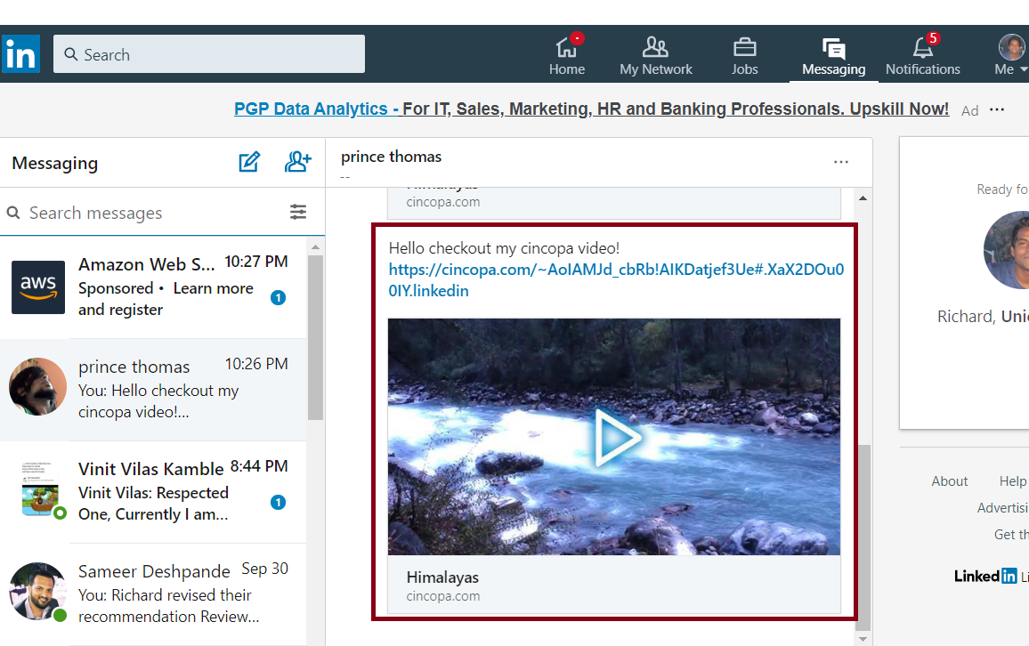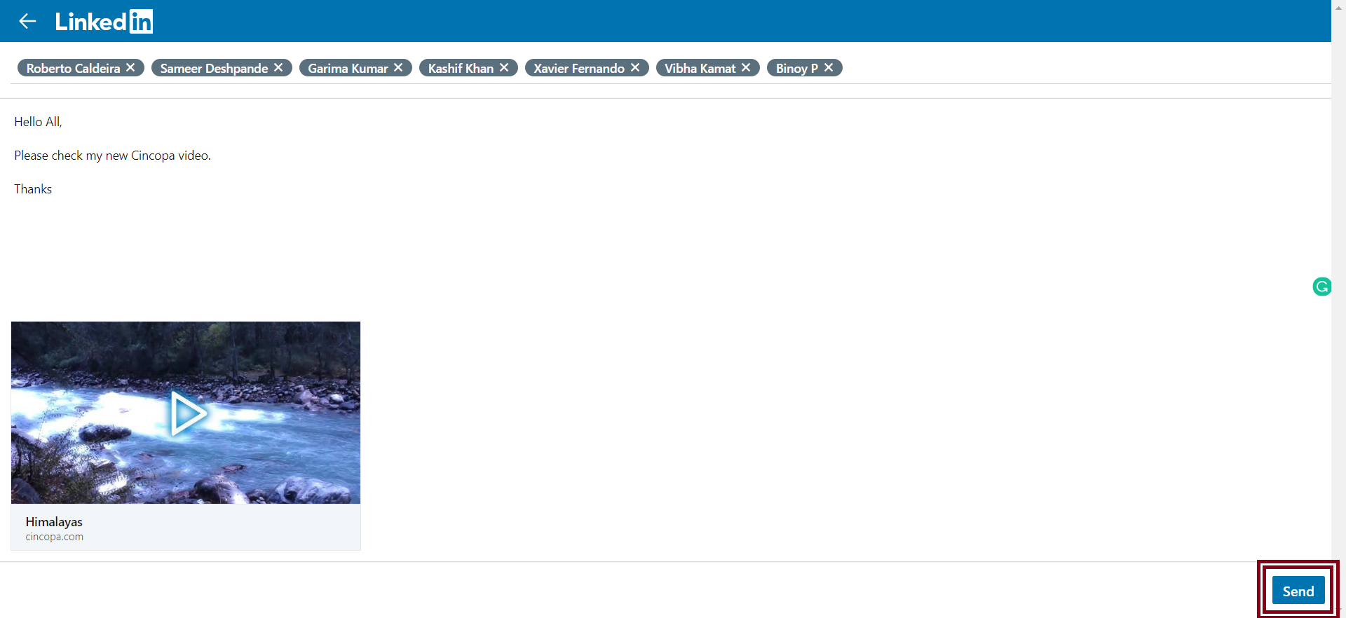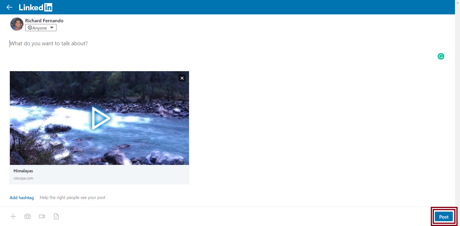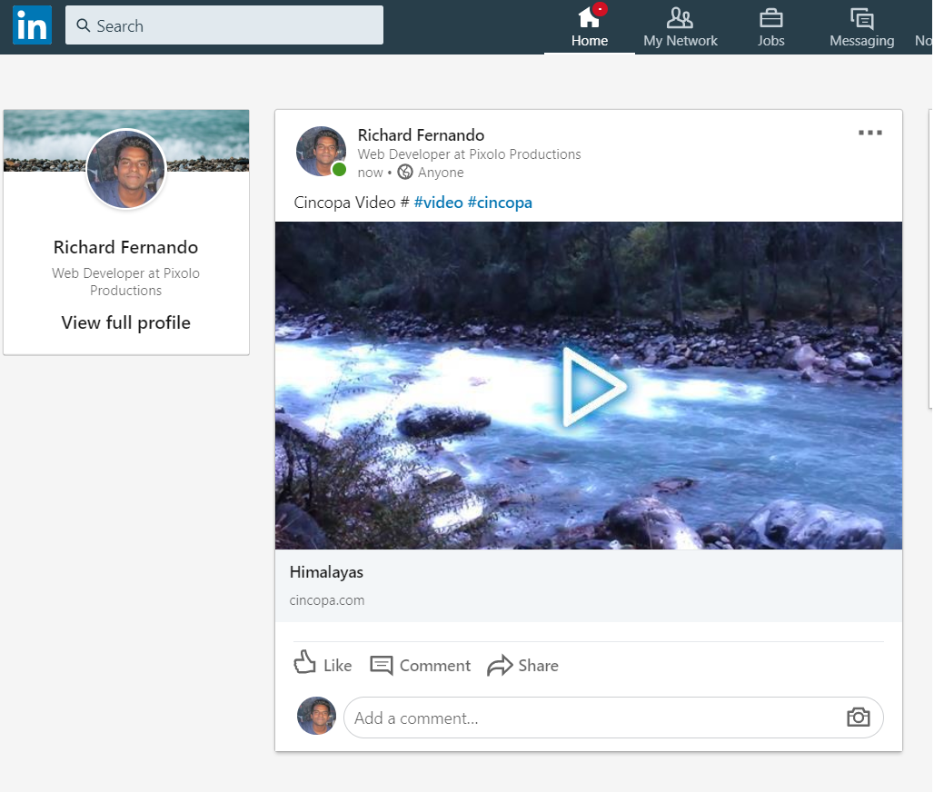 Cincopa allows you to share your Cincopa videos, images and other documents directly from your Cincopa account to your Linkedin account.