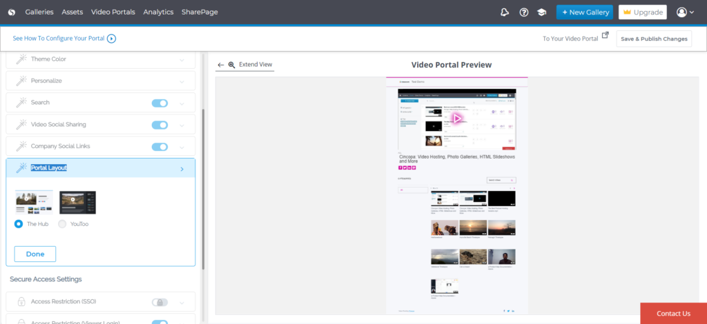 Once all the changes in the Video Portal are completed, you can hit the button Save & Publish Changes