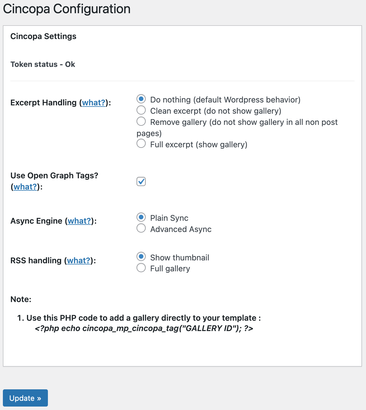 Some themes will use the default automatic WordPress excerpt behavior which can result in a messy post summary. To fix that use one of those options that will instruct Cincopa plugin what to do with your gallery:
