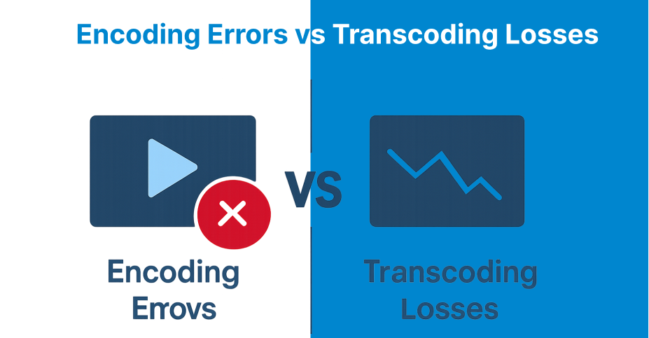 Visual artifacts in digital video trace back to two main causes: encoding errors and transcoding losses. Encoding errors occur when data compression pushes beyond what the codec can accurately represent, leading to distortions like blockiness or color shifts. On the other hand, transcoding losses appear when already compressed video is reprocessed, compounding small degradations into visible flaws. Understanding how each artifact forms is essential for maintaining consistent visual fidelity across multiple processing stages and preventing avoidable quality loss. Types of Artifacts Encoding Errors Typical artifacts include blocking (grid patterns at low bitrates), ringing (halos near edges), and mosquito noise (flickering distortions in motion areas). These usually appear in high-detail regions, such as textures, during the first encoding pass. Transcoding Losses Transcoding introduces cumulative degradation, such as macroblocking becomes more visible, gradients show posterization, and flickering can occur from mismatched motion data. Each transcoding pass increases blurring and reduces sharpness by roughly 10% to 20%. Causes and Mechanisms Encoding Errors These originate from transform coding processes like DCT, where quantization removes fine details to compress data. Limited motion estimation accuracy between frames adds further distortion. At constrained bitrates, complex scenes can lose 5% to 15% PSNR, especially when encoded around CRF 28. Transcoding Losses Losses occur when decoding imperfections are reintroduced during re-encoding, including rounding errors and bitrate mismatches. Over successive transcodes, these errors multiply; an initial 2 dB PSNR loss can grow to 4 dB after a second generation, with additional noise accumulating through variable bitrate streams. Measurement and Detection Encoding Errors These are measured using PSNR (typically 30 dB to 40 dB) and SSIM (0.90–0.95). Edge variance and similar metrics help identify blocking artifacts. A VMAF score between 80–90 generally indicates acceptable first-generation quality, with spatial distortion as the main concern. Transcoding Losses They are tracked through generational PSNR decay, typically losing 1 dB to 3 dB per re-encode, and SSIM drops of 0.05 to 0.10. Difference imaging between generations reveals cumulative visual loss, and VMAF often drops below 85 after 2 to 3 transcodes, showing temporal and color inconsistencies. Impact on Quality Encoding Errors These reduce visual quality in static or low-light scenes by 10% to 20%, but the effects are limited to the first encoding cycle. In high-motion footage, artifacts can increase by up to 25%, especially in lower bitrate streams below 5 Mbps. Transcoding Losses Repeated transcoding leads to progressive quality loss (up to 40% detail reduction after three cycles), making it unsuitable for archival purposes. Dynamic footage is most affected, with artifacts 30% more visible during multi-format conversions and broadcast delivery. Mitigation Strategies Encoding Errors Use higher bitrates (CRF 18–23) or two-pass encoding to minimize quantization loss by around 20%. Enable deblocking filters ( -deblock in FFmpeg) and advanced profiles such as High@4.2 to suppress ringing, maintaining SSIM above 0.95. Transcoding Losses Reduce transcoding cycles by using direct format conversions and intermediate lossless formats like FFV1. Apply perceptual tuning ( -crf 20 and aq-mode 1 ) to counter cumulative drift. With GPU acceleration, it is possible to limit PSNR loss to under 1 dB per generation. Comparison Table