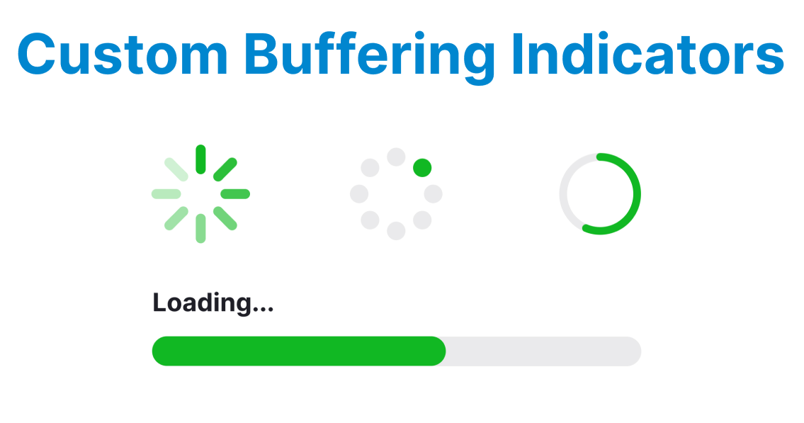 tag provides the video content, and controls adds the standard play/pause and volume buttons. The #bufferingIndicator is initially hidden and will be shown when buffering occurs. Customizing the Buffering Indicator Styling the buffering indicator ensures it is visible without obscuring the video content and maintains a consistent visual hierarchy. CSS for Custom Buffering Indicator .buffering-indicator { display: none; position: absolute; top: 50%; left: 50%; transform: translate(-50%, -50%); background-color: rgba(0, 0, 0, 0.5); color: white; padding: 10px 20px; border-radius: 5px; font-size: 18px; font-weight: bold; } #videoPlayer { position: relative; width: 100%; height: auto; } Explanation: Positioning : The .buffering-indicator is absolutely positioned in the center of the video element. Styling : The indicator has a semi-transparent black background and white text to ensure visibility on top of the video. Detecting Buffering Events and Showing the Indicator Use JavaScript to listen for the waiting event (buffering start) and playing event (buffering end) to toggle the indicator. const videoPlayer = document.getElementById('videoPlayer'); const bufferingIndicator = document.getElementById('bufferingIndicator'); // Show buffering indicator when the video is buffering videoPlayer.addEventListener('waiting', () => { bufferingIndicator.style.display = 'block'; // Show indicator }); // Hide buffering indicator when video is playing videoPlayer.addEventListener('playing', () => { bufferingIndicator.style.display = 'none'; // Hide indicator }); Explanation: waiting event : Triggered when the video pauses for buffering. When this event occurs, the buffering indicator becomes visible. playing event : Triggered when the video starts playing after buffering. The indicator is hidden again. Advanced Customization: Animated Buffering Indicator For a more visually appealing loading experience, you can add animations to the buffering indicator. Here’s how you can animate the indicator to give the user better feedback during the buffering process. CSS Animation for the Buffering Indicator .buffering-indicator span { animation: loading 1.5s infinite linear; } @keyframes loading { 0% { content: 'Loading...'; } 50% { content: 'Loading..'; } 100% { content: 'Loading...'; } } Explanation: @keyframes loading : This defines an animation that cycles through three dots (e.g., 'Loading...', 'Loading..', 'Loading...') to indicate that the video is still buffering. animation property : Applies the animation to the text in the buffering indicator, creating a dynamic effect. Handling Buffering in Adaptive Bitrate Streaming For video players that support Adaptive Bitrate Streaming (like HLS or DASH), buffering can occur more frequently due to bitrate adjustments based on network conditions. You may want to display additional information or use a more complex loading animation to reflect changes in streaming quality. Example: Buffering Indicator with Dynamic Text Based on Network Conditions You can use JavaScript to monitor the player's network conditions and display different messages based on buffering severity. videoPlayer.addEventListener('waiting', () => { const bufferedTime = videoPlayer.buffered.end(videoPlayer.buffered.length - 1); if (bufferedTime < 10) { bufferingIndicator.innerHTML = 'Buffering... (low bandwidth)'; } else { bufferingIndicator.innerHTML = 'Buffering...'; } bufferingIndicator.style.display = 'block'; }); Explanation: buffered property : Tracks the buffered data time ranges for the video. Dynamic message : If the video has buffered less than 10 seconds, it displays a message indicating potential low bandwidth. Best Practices for Optimizing Buffering Indicators Minimal Disruption : The buffering indicator should be noticeable but not intrusive. Avoid large, distracting overlays. Adaptive Feedback : Customize the feedback based on network conditions to inform users more precisely about buffering reasons (e.g., slow internet or low-quality stream). Smooth Transitions : Use CSS transitions and animations to make the appearance and disappearance of the buffering indicator seamless. Lazy Loading of Buffers : For videos with multiple sources, implement lazy loading techniques to ensure that the browser only loads video files as needed, reducing initial buffering time. Cross-Browser Testing : Ensure that the buffering indicators work consistently across different browsers, especially for mobile browsers.