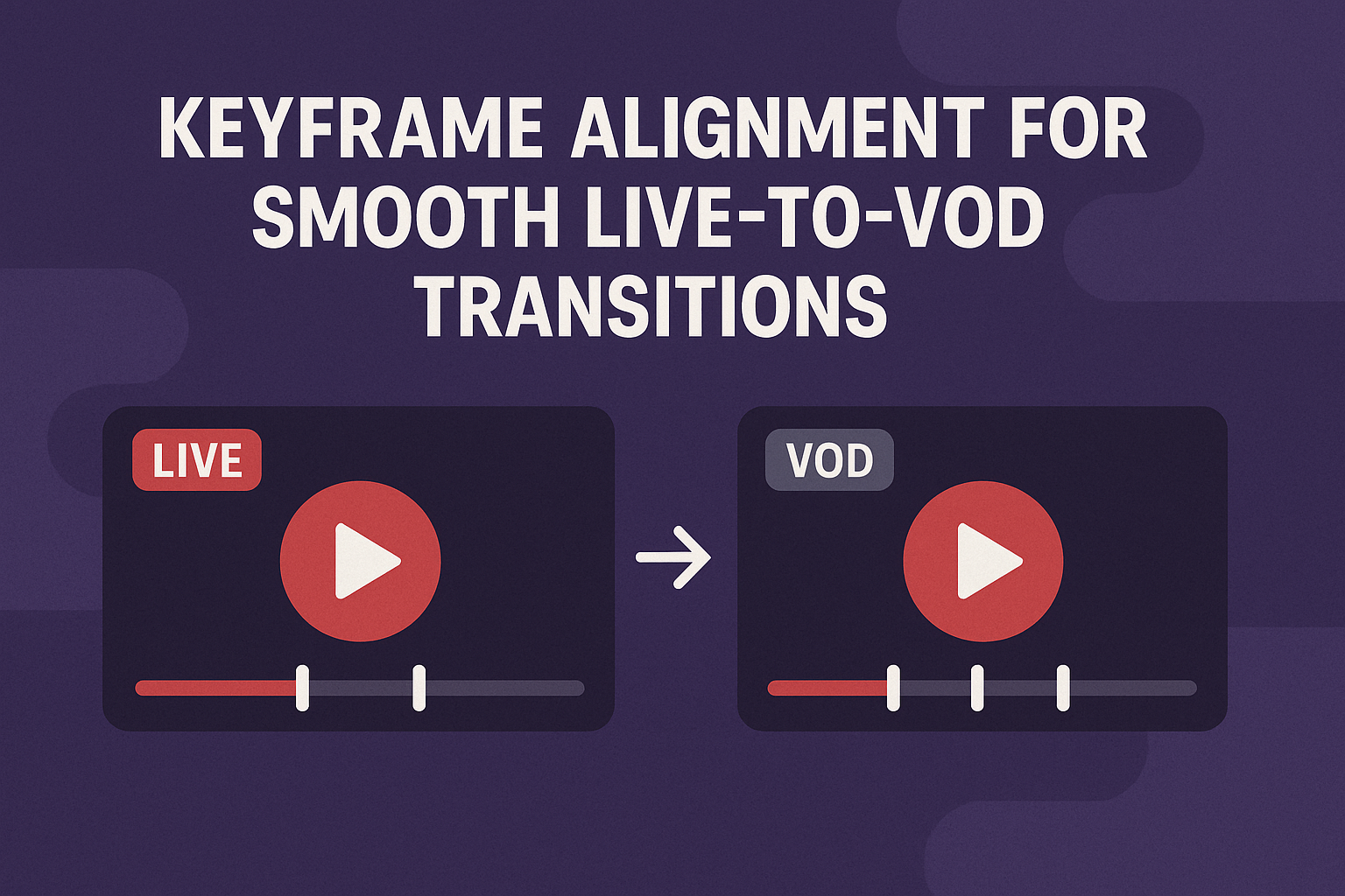 Keyframe alignment ensures a seamless transition between live video as well as video on-demand (VOD) video streams. When live streams are recorded and later converted to VOD, differences in keyframe intervals can cause playback issues such as buffering, glitches, or desynchronization. Proper keyframe alignment maintains a consistent video structure. This enables smooth playback when switching between live and recorded versions. Moreover, this process also helps deliver uninterrupted viewing experiences, preserves video quality, and supports faster start times for on-demand content. In live-to-VOD workflows, aligning keyframes helps achieve technical efficiency as well as viewer satisfaction . Understanding Keyframes in Live Streams In live streams, content is encoded in real-time, with keyframes inserted at regular intervals (e.g., every 2 seconds) to enable efficient compression and seeking. Video-on-demand (VOD) content (derived from recorded or archived streams) uses similar structures. However, it may differ in keyframe placement if not aligned. Live-to-VOD transitions occur when playback shifts from a real-time stream to a pre-recorded version, such as replaying a highlight. Misaligned keyframes can disrupt this switch and cause artifacts like stuttering or freezes. Proper alignment ensures uninterrupted continuity to preserve user experience and prevent playback failures. The Challenge of Switching from Live to Recorded Video Live streams are encoded into short segments (typically 2-6 seconds) for adaptive bitrate delivery. Upon event completion, these segments are archived as VOD assets. However, if keyframe positions differ between live and VOD encodings, the transition may land mid-segment on a delta frame. This misalignment leads to several critical issues, such as visual glitches (including brief freezes or jumps), audio-video desynchronization, as well as player failures, which require reloads or buffering. These problems arise as decoders rely on keyframes to reconstruct frames independently. Without alignment, the decoder lacks a clean entry point, degrading quality and increasing latency; key concerns in high-stakes applications like sports broadcasting or e-commerce live events. Aligning Keyframes for Uninterrupted Transitions Keyframe alignment synchronizes keyframe positions across live and VOD pipelines, enabling uninterrupted segment switching. This involves: Fixed GOP Structure : Maintaining a consistent Group of Pictures (GOP) pattern, where each GOP starts with a keyframe and includes a fixed number of frames. Deterministic Keyframe Interval : Inserting keyframes at precise, repeatable timestamps (such as every 2 seconds at 30 Frames Per Second). Shared Timestamp Base : Using identical presentation timestamps in both live and VOD workflows to ensure exact alignment. Alignment prevents discontinuities in manifests (e.g., HLS or DASH playlists ) for players to switch without re-buffering. This enhances viewer satisfaction and also reduces server load and supports compliance with streaming standards like those from MPEG-DASH or Apple HLS . Implementation in a Streaming Workflow Implementing keyframe alignment requires coordinated configuration across encoding, segmentation, and verification stages. Below are best practices for common tools, such as FFmpeg. Encoder Configuration Configure encoders (e.g., x264 or NVENC) with fixed parameters to enforce keyframe intervals. Disable adaptive features that could introduce variability: keyint=60 min-keyint=60 scenecut=0 keyint=60 : Forces a keyframe every 60 frames (2 seconds at 30 fps). min-keyint=60 : Prevents shorter intervals. scenecut=0 : Disables scene-change detection, ensuring deterministic placement. Apply identical settings to both live and VOD transcoding pipelines. Segmenter Configuration Use segmenters (like FFmpeg's HLS muxer or DASH packagers) to align segment boundaries with keyframes. Ensure segments start and end on keyframes to avoid mid-GOP cuts. For example, in FFmpeg: ffmpeg -i input.mp4 -f hls -hls_time 2 -hls_keyframe 1 output.m3u8 This command segments at 2-second intervals, forcing alignment with keyframes. Timestamp Continuity Synchronize clocks between live encoders and VOD transcoders using a common reference (e.g., NTP or SMPTE timecodes ). Even minor drifts (e.g., 1 to 2 frames) can misalign timestamps, so monitor and correct for clock skew in production environments. Verification Post-encoding, validate alignment to confirm smooth transitions: Step 1 : Extract keyframe timestamps using ffprobe: ffprobe -select_streams v:0 -show_frames -skip_frame nokey input.mp4 | grep pkt_pts_time Step 2 : Compare timestamps from the last live segment and first VOD segment. Step 3 : Ensure matches within 1 frame duration (e.g., <33ms at 30 fps). Automated tools like MediaInfo or custom scripts can flag discrepancies. If alignment fails, re-encode with adjusted parameters. Successful verification guarantees glitch-free playback, improving metrics like viewer retention and reducing support tickets.